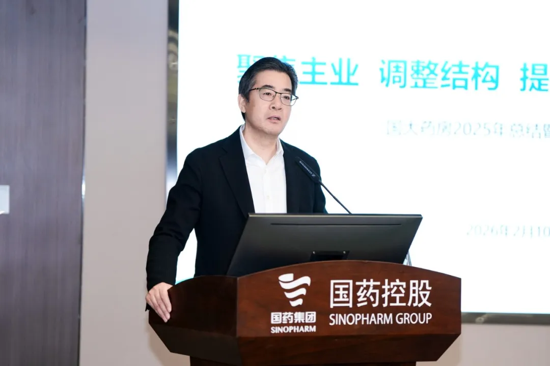 吴壹建作题为《聚焦主业 调整结构 提质增效 转型升级》的工作报告。报告指出,2025年面对内外交困的严峻形势,在国药集团和国药控股的战略指引下,国大药房全体干部员工迅速调整布局,重塑组织,重塑业务,抓住关键核心要点,迎难而上,实现了经营和管理上的逆势上扬。以舍我其谁的勇气与担当,狠抓亏损治理,强攻核心商品,细抠提质增效,实现了2025年经营业绩的逆风翻盘、扭亏为盈,书写了一段波澜壮阔的改革历史。报告强调,2026年国药控股国大药房要聚焦核心、优化业务结构、深化降本增效,积极探索转型升级新路径,围绕商品力与品牌力建设,系统打造国大药房的核心竞争力,以实干实绩奋力实现“十五五”良好开局。